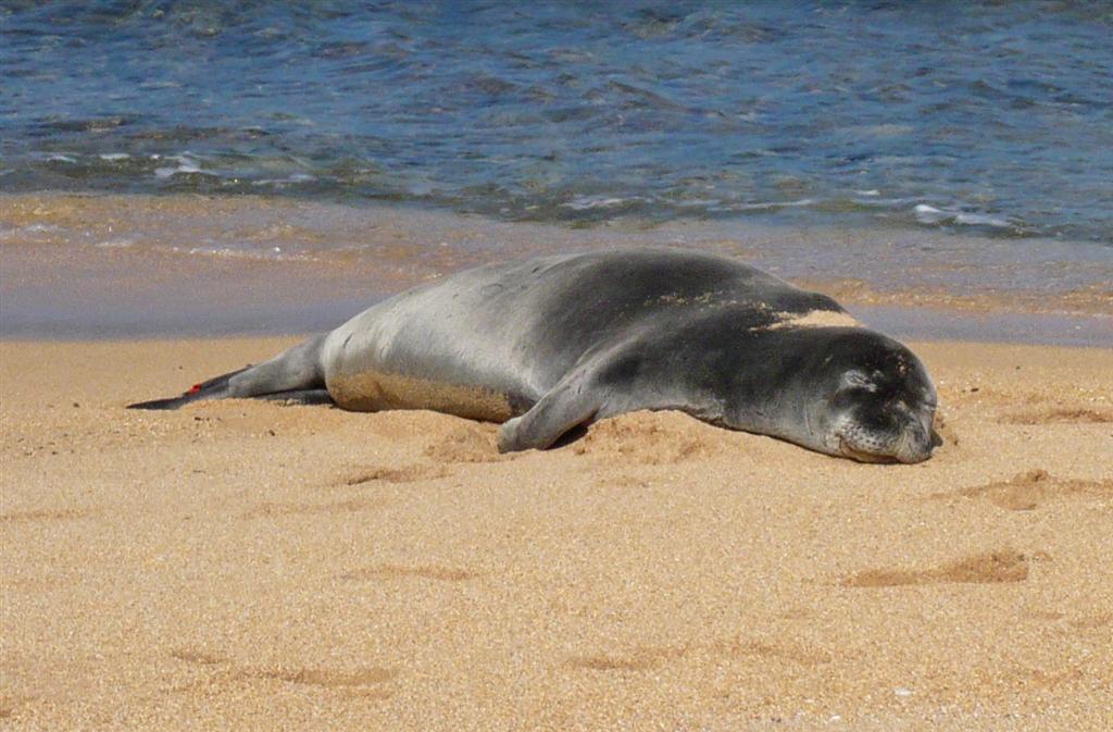 A monk seal! These are protected, and this one, like subsequent ones we saw, had orange cones set up around it to keep pesky gawkers at bay. Look at that face, would ya? That adorable face made it really, really hard to obey those cones. We didn't see any while snorkeling, which is probably a good thing because they're big and would've scared me silly given that I have a fear of the underwater to begin with. Also, tiger sharks prey on monk seals, and I'd rather not be close to one in the water lest I be confused for a shark meal.